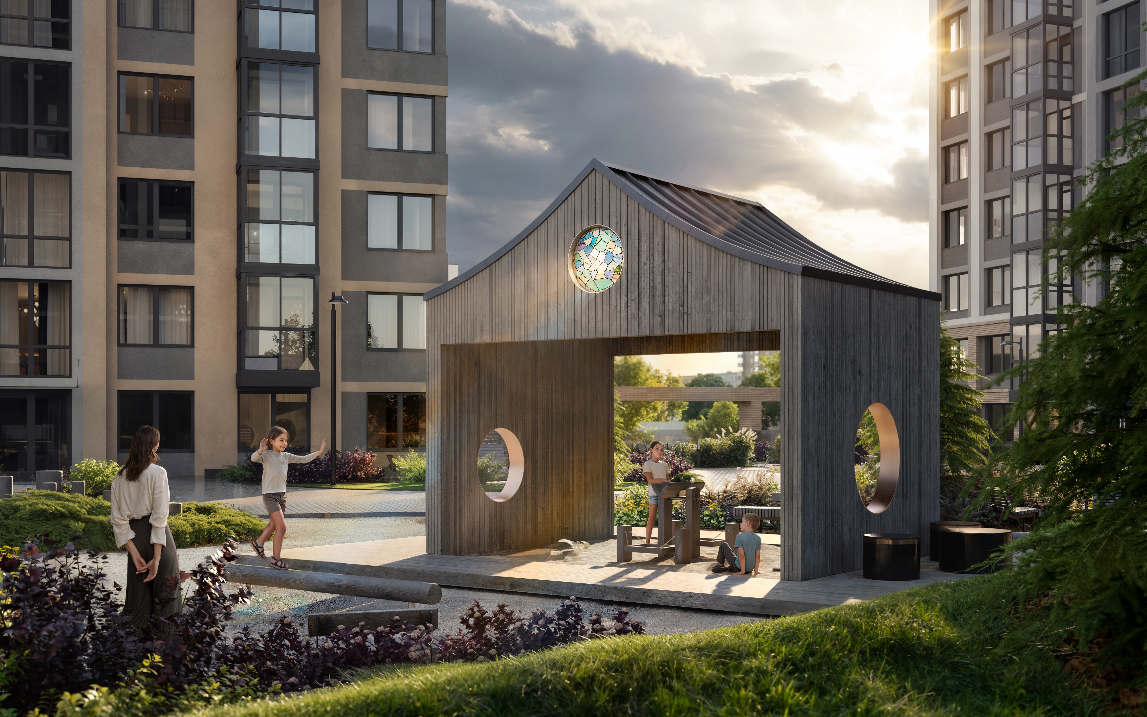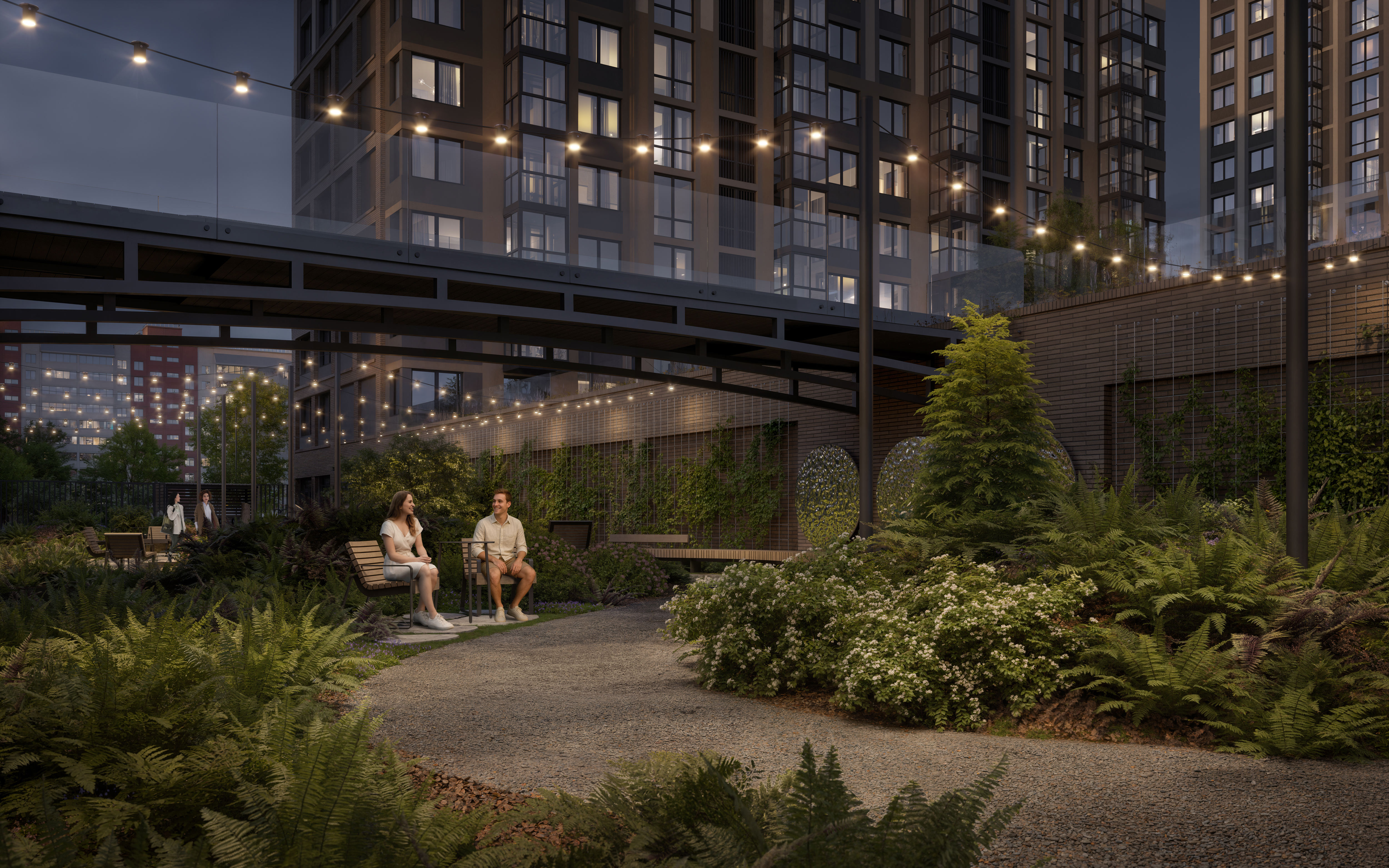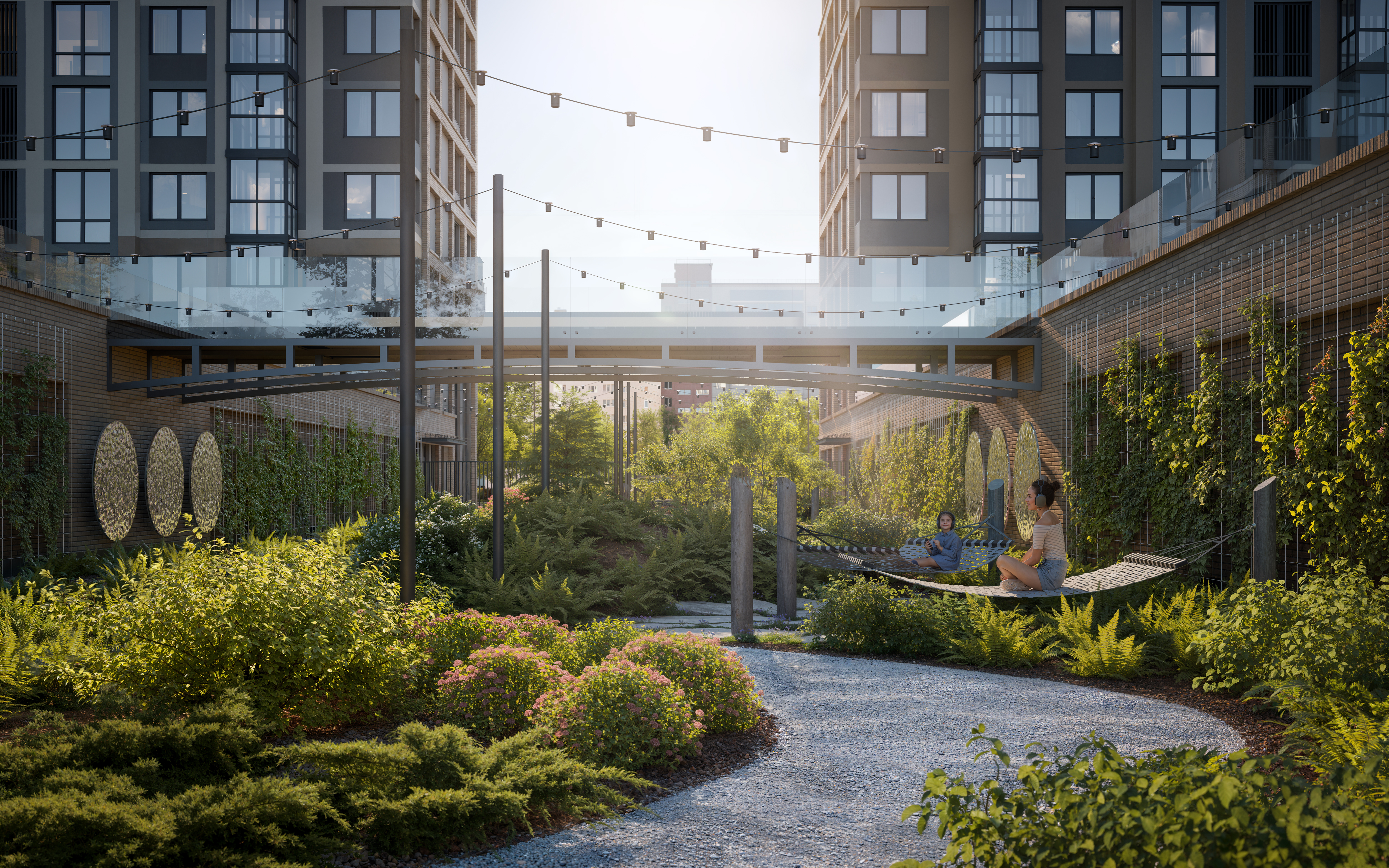 Второй двор - территория общения и обмена эмоциями. Объединяет обе части мост, по которому вы сможете свободно перемещаться из одного двора в другой.